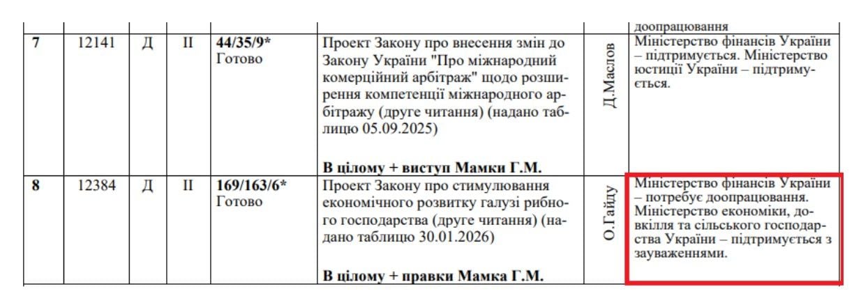Сьогодні Верховна Рада України планувала розглянути проєкт Закону №12384 «Про стимулювання економічного розвитку галузі рибного господарства». Проте, на тлі численних зауважень з боку профільних міністерств, екологічних організацій та правоохоронних органів, законопроєкт було знято з порядку денного. Це «пауза», яка дає галузі шанс на якісне доопрацювання.